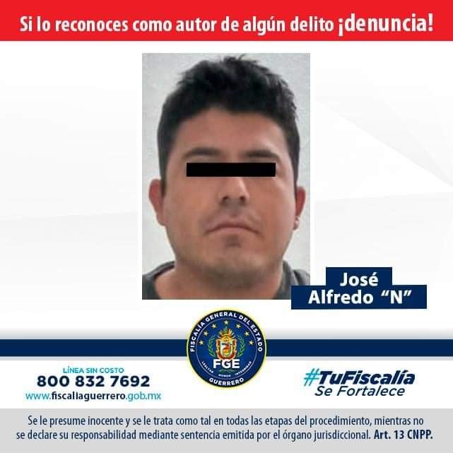 La Fiscalía General de Guerrero a través de la Policía Investigadora Ministerial Zona Norte, detuvo en flagrancia a José Alfredo “N”, como probable responsable del delito de lesiones calificadas y violencia familiar equiparada en agravio de una mujer; por ello quedó interno en el Centro de Reinserción Social de Tuxpan, bajo la medida cautelar de prisión preventiva oficiosa.