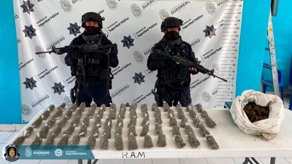 Elementos de la Policía Estatal aseguraron droga en la cabecera municipal de Coyuca de Catalán, la región de la Tierra Caliente.