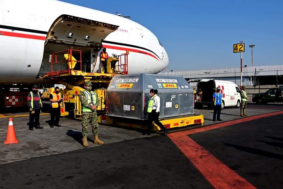 Esta mañana arribó a México el trigésimo primer cargamento con 585 mil #Vacunas envasadas contra el virus SARSCoV2 de la farmacéutica PfizerBioNTech, procedente de Estados Unidos.