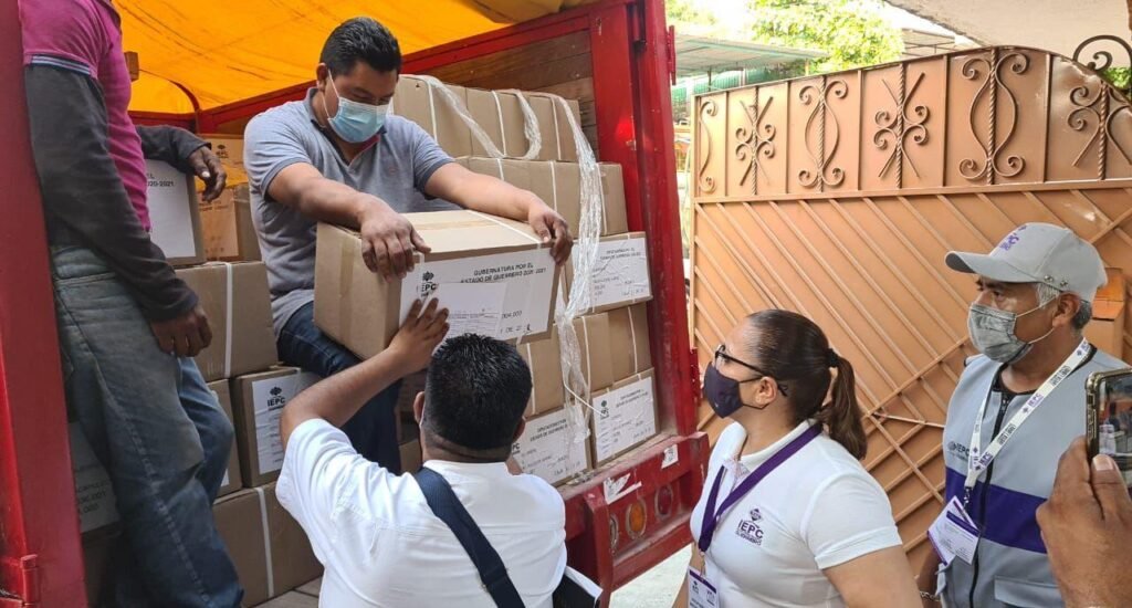 Las boletas electorales se recibieron en las bodegas de Chilpancingo y Acapulco, en las que se está realizando la distribución para hacerlas llegar a los 28 Consejos Distritales Electorales del Instituto Electoral y de Participación Ciudadana del Estado de Guerrero.
