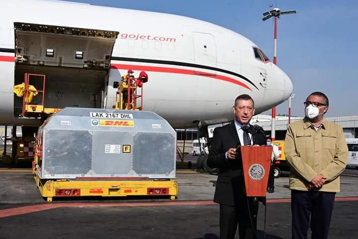 La mañana de este jueves, a las 9:09 horas, arribó a México el trigésimo sexto cargamento de Pfizer BioNTech con 585 mil vacunas envasadas contra el virus SARSCoV2 procedente de Estados Unidos.