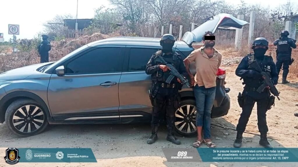 Elementos de la Policía Estatal y del Grupo de Operaciones Especiales “Jaguar” detuvieron a un hombre en posesión de paquetes con droga y un vehículo con reporte de robo en el municipio de Tecpan de Galeana, en la región de la Costa Grande.