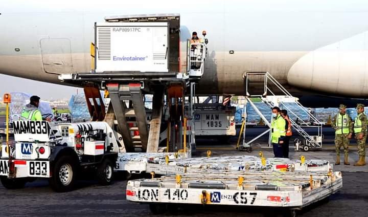Hoy jueves 3 de junio México recibió un millón 585 mil vacunas envasadas contra COVID 19, de las cuales, un millón de dosis son de la farmacéutica Sinovac y 585 mil de Pfizer.