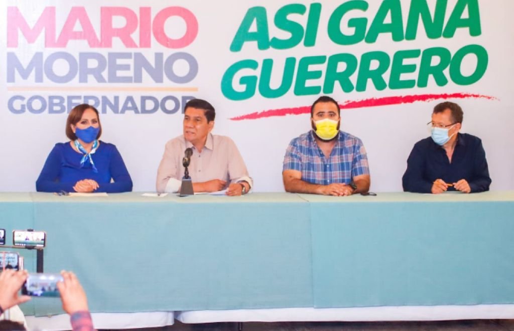 Este miércoles por la mañana, Mario Moreno ofreció una conferencia de prensa acompañado por los dirigentes estatales del PRI, Héctor Apreza Patrón, y del PRD, Alberto Catalán Bastida, así como el coordinador de campaña Evodio Velázquez, la candidata del PAN a la gubernatura, Irma Lilia Garzón Bernal, y el candidato a alcalde de Chilpancingo, Alejandro Arcos Catalán.