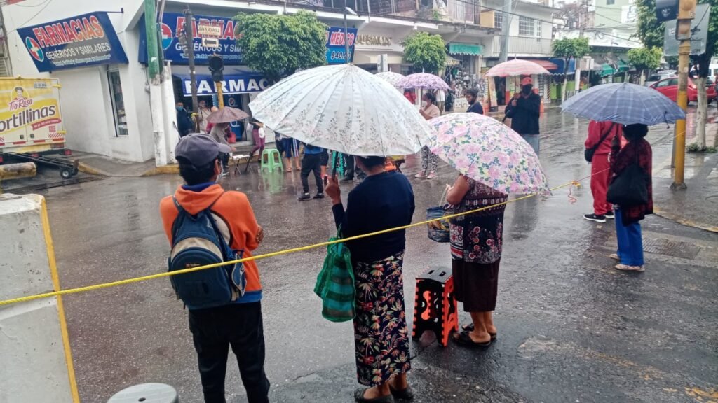 Con todo y lluvia, los afectados se colocaron justo en la entrada del paso a desnivel, lo que ocasionó caos vehicular.