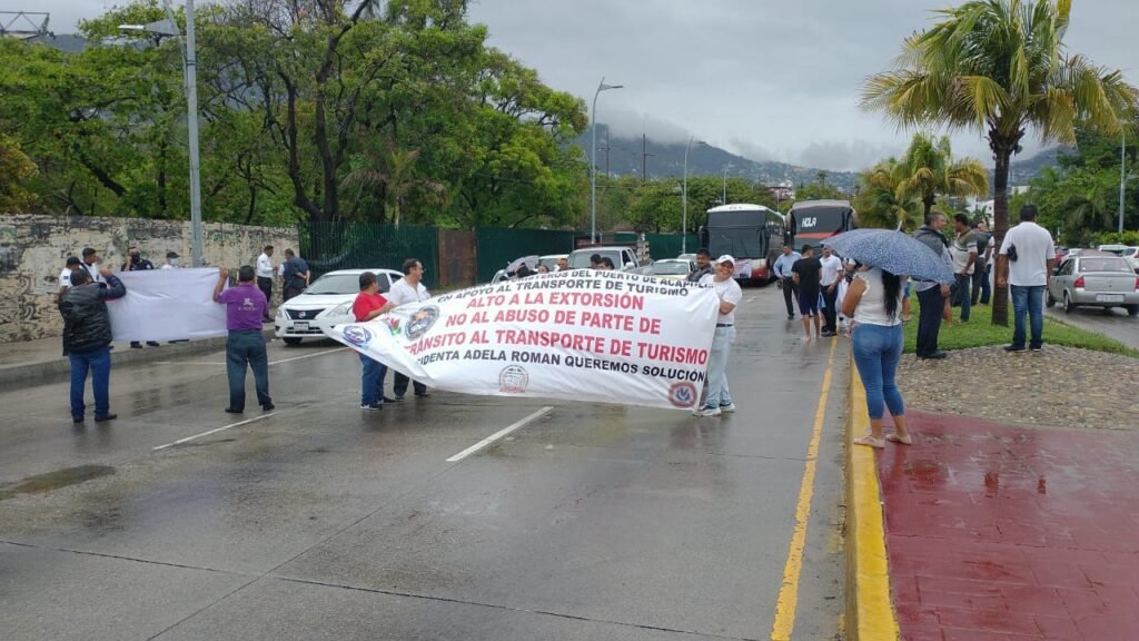 Integrantes de la Asociación de Operadores y Propietarios de Autobuses de Turismo bloquearon durante una hora la avenida Costera Miguel Alemán, para denunciar abusos de los elementos de la policía vial del municipio de Acapulco.