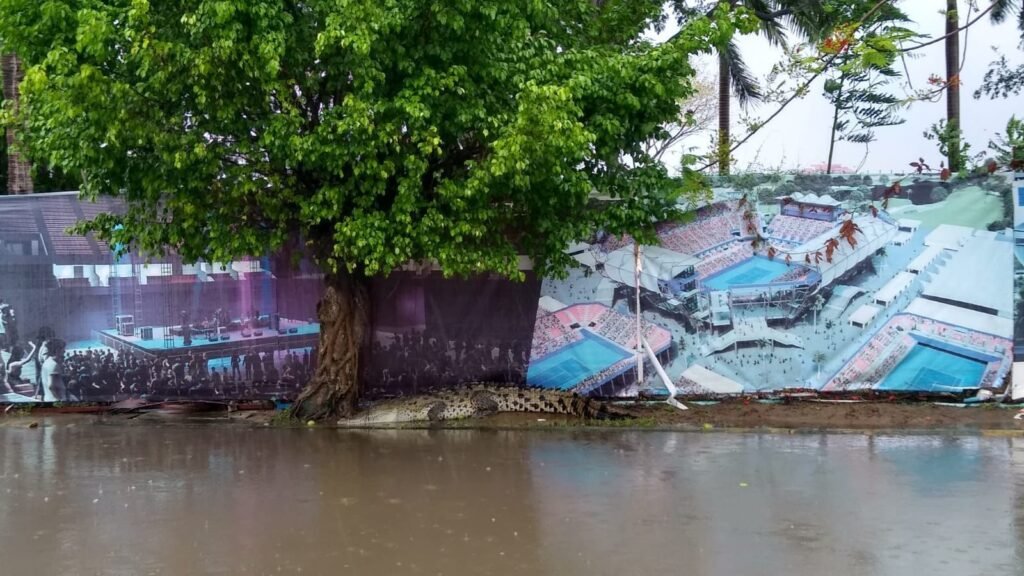 ACAPULCO. —Un cocodrilo de gran tamaño fue visto este viernes sobre avenida de principal del Revolcadero.