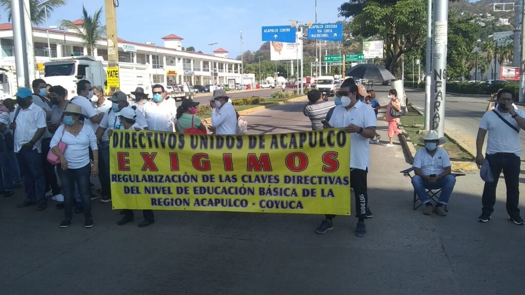 ACAPULCO. —Docentes que cumplen funciones de directores en distintas zonas escolares se manifestaron otra vez en el bulevar de Las Naciones, para que las autoridades de educación les regularicen sus claves.