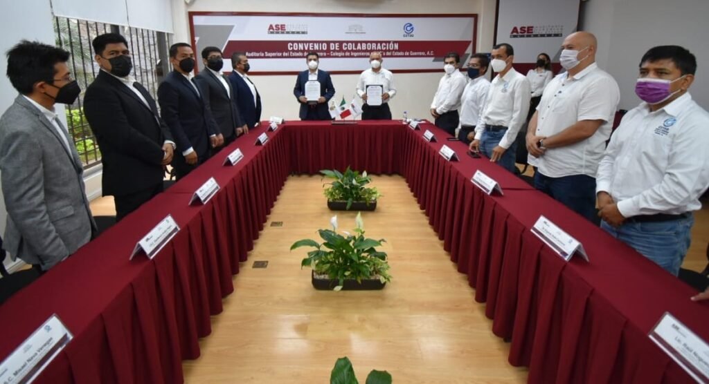 El auditor Superior del Estado de Guerrero, Alfonso Damián Peralta y el presidente del Colegio de Ingenieros en TIC´s del Estado de Guerrero, A.C., Rosendo Guzmán Nogueda, firmaron un Convenio de Colaboración entre ambas instituciones; el cual tiene como objetivo incrementar las competencias y habilidades de los servidores públicos de la ASE, a través de la capacitación específica en materia de informática y desarrollo tecnológico, promoviendo el uso de las tecnologías de la información, con el propósito de desarrollar herramientas tecnológicas que permitan optimizar las actividades del Órgano de Fiscalización Superior.