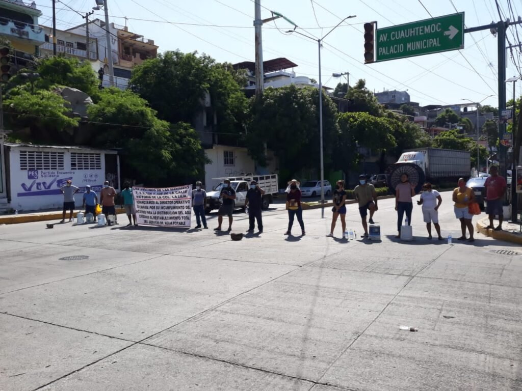 Habitantes de la colonia La Laja bloquearon la avenida Adolfo Ruiz Cortines en Acapulco, para exigir el servicio de agua potable, ya que desde hace un mes no cuentan con el suministro en sus hogares.