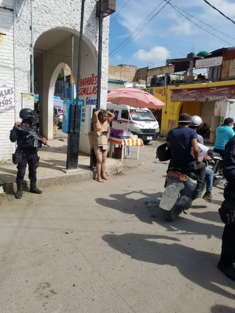 Policías del Estado acudieron tras ser alertados mediante llamada al 911 de Emergencias, luego de que una turba de comerciantes y otras personas lo estaban golpeando.