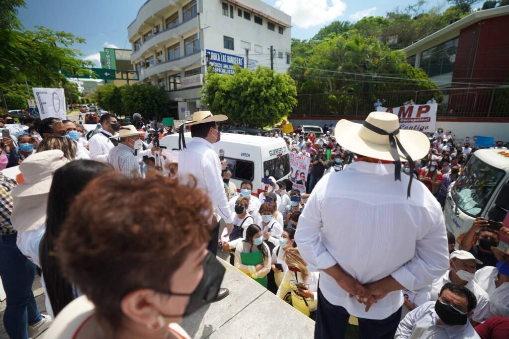 El dirigente morenista encabezó este jueves actividades de promoción con la participación de decenas de personas, en el monumento a Las Banderas, en Chilpancingo, a pesar de que en la ciudad capital hay casi 800 personas contagiadas de COVID 19 y en el hospital general ya no hay camas disponibles para atender a más pacientes contagiados.