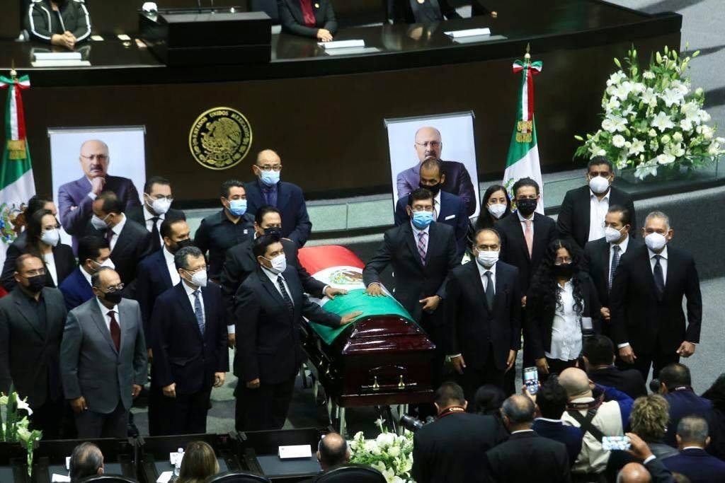 Alrededor de las 11:30 horas, el féretro con los restos de quien fuera coordinador de los legisladores del PRI ingresó al Salón de Sesiones del recinto legislativo de San Lázaro, entre aplausos de sus compañeros de Legislatura y políticos de todos los partidos quienes trasladaron sus restos desde la carroza fúnebre.