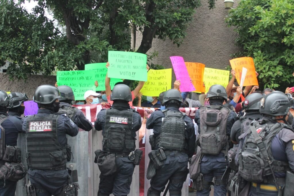 - Los inconformes exigían que la Fiscalía entrega sábanas con resultados de las urnas que fueron robadas y quemadas por hombres armados en esa ciudad, el día de la elección