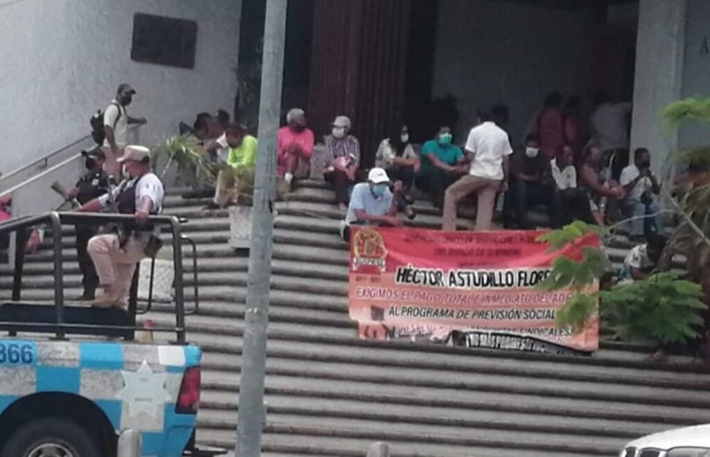 Durante la protesta informaron que la movilización es para exigir el pago de 350 millones que adeuda el gobierno del estado por descuentos que les aplica quincenalmente.