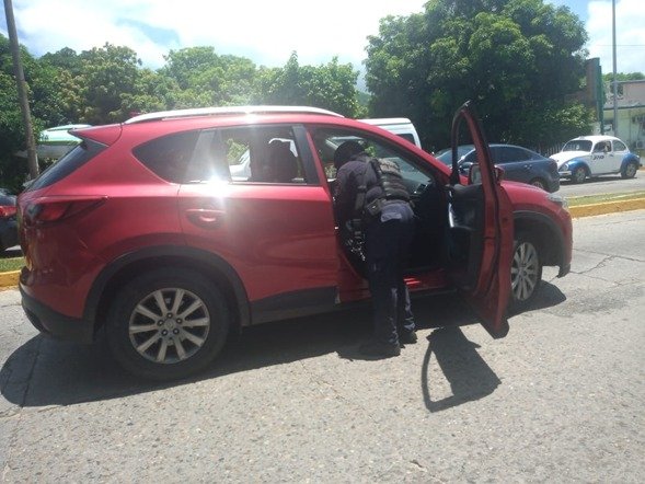 Tras recibir una llamada de alerta, los elementos de la policía acudiendo al lugar, donde montaron los dispositivos de búsqueda y localización para dar con los presuntos responsables, por lo que al circular por la zona, a la altura de la Iglesia, se dio el aseguramiento.