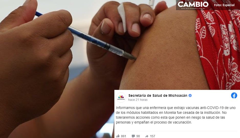 Fue las Secretaría de Salud del estado de Michoacán la que informó, a través de Twitter que “No toleraremos acciones como esta que ponen en riesgo la salud de las personas y empañan el proceso de vacunación”.