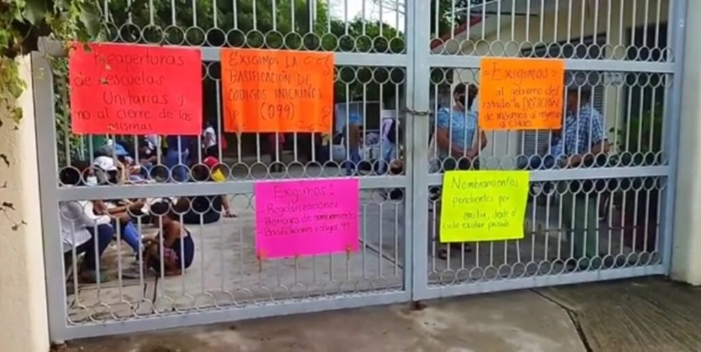 Los manifestantes son maestros de escuelas del municipio de Tecpan de Galeana y de Atoyac de Álvarez, quienes llegaron a cerrar la sede de la SEG aquí en la Costa Grande, además de colocar algunas pancartas para pronunciar su inconformidad con el actuar del gobierno federal, que les exige su regreso a las aulas pese a estar latente la tercera ola delta de la pandemia del Covid-19.