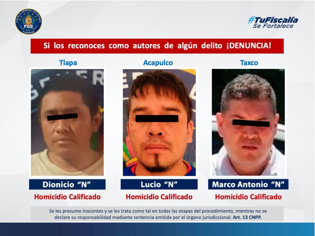La Fiscalía General del Estado logró vinculación a proceso en contra de Dionicio “N”, por delito de homicidio calificado; así mismo se cumplimentó la orden de aprehensión en contra de Lucio “N” y Marco Antonio “N”, por homicidio calificado en Acapulco y Taxco respectivamente.