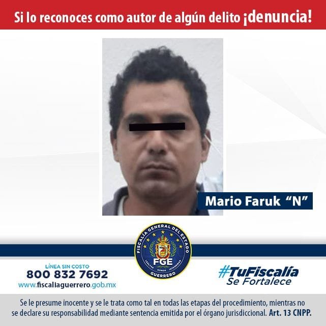La Fiscalía General del Estado de Guerrero en colaboración con su homóloga del Estado de Morelos, lograron la detención en Acapulco de Mario Faruk “N”, como probable responsable del delito de secuestro en el municipio de Yautepec.