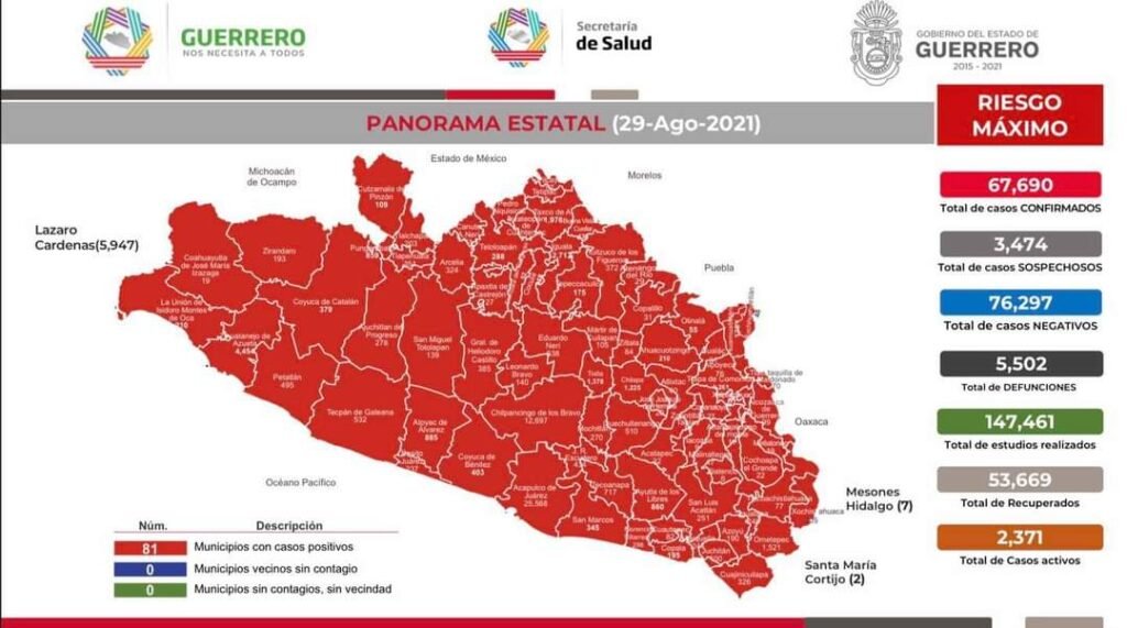 Este domingo se registraron en Guerrero 265 nuevos contagios y 22 defunciones más por COVID 19 y ahora suman 877 personas fallecidas durante este mes.