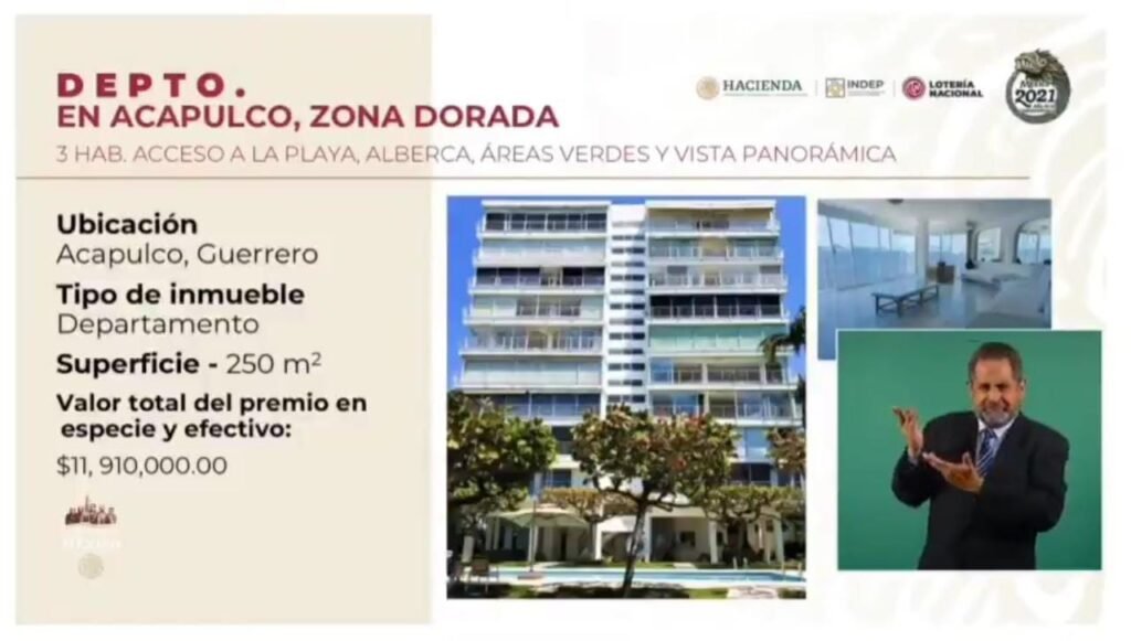 Un departamento en Acapulco y una casa en Ixtapa-Zihuatanejo son parte de los 22 premios en especie que el gobierno federal, a través de la Lotería Nacional, sorteará el próximo 15 de septiembre. Los fondos que se recauden serán destinados para dar estímulos económicos a las y los atletas que participaron en los Juegos Olímpicos y Paralímpicos de Tokio 2021.
