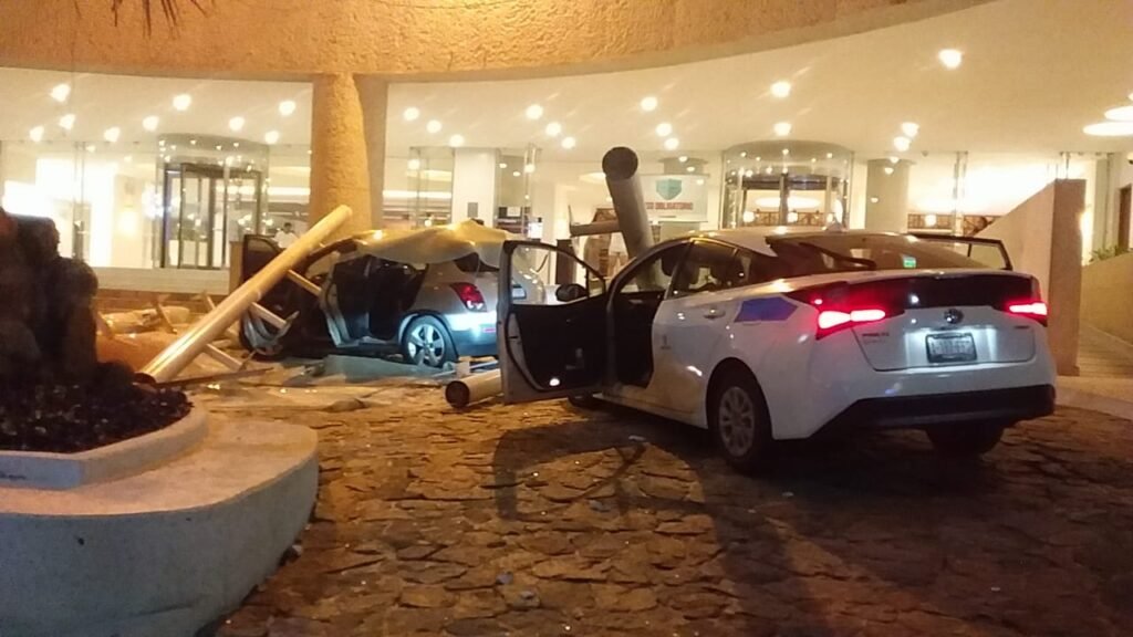 En el hotel Emporio, que se ubica muy cerca de la glorieta de La Diana, algunas estructuras se vinieron abajo y dañaron al menos dos vehículos que estaban en el acceso.