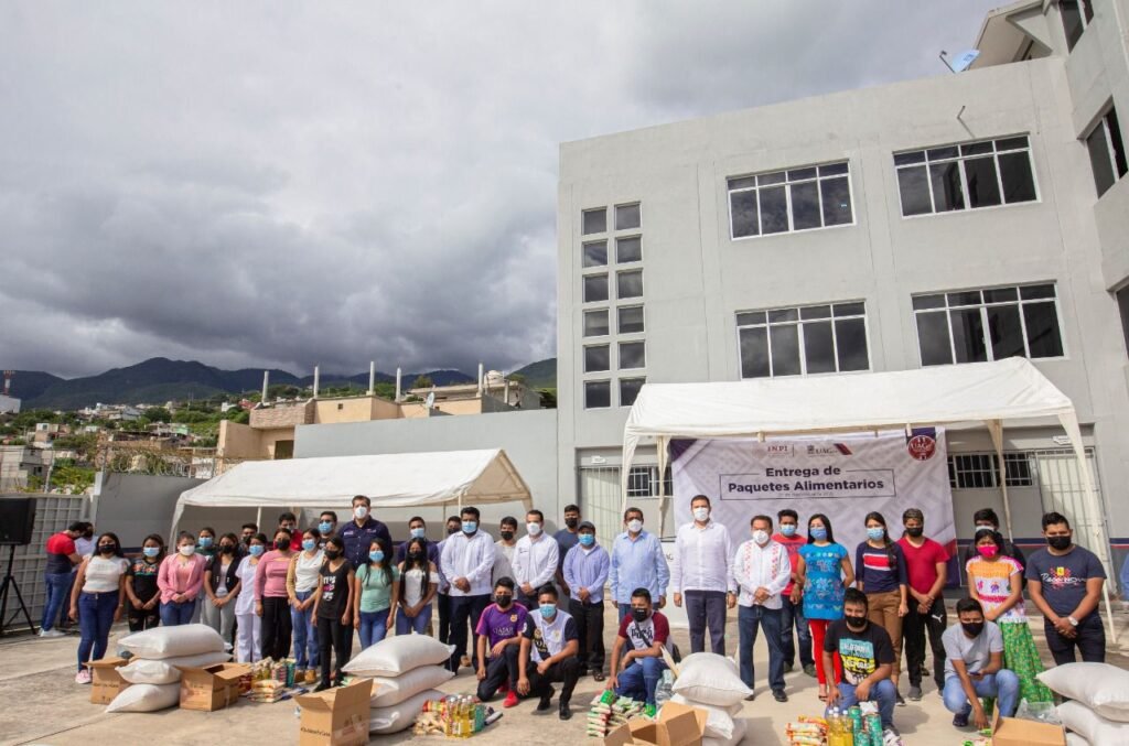 - El rector José Alfredo Romero Olea y el delegado del INPI, Manuel Vázquez Quintero, encabezaron la entrega de paquetes alimentarios en la Casa del Estudiante Indígena en la colonia Rosario Ibarra, en Chilpancingo.