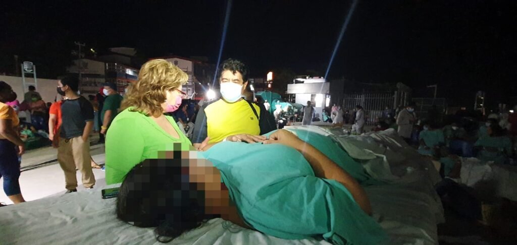 Habían transcurrido poco más de cinco horas del sismo de 7.1 grados Richter y de la evacuación necesaria en el nosocomio, de acuerdo con los protocolos de Protección Civil, cuando en el estacionamiento de la casa de máquinas del hospital se instaló un campamento provisional para la atención inmediata de usuarios.