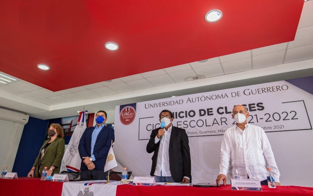 Previo a la inauguración del ciclo escolar 2021-2022, el rector fue anfitrión en la apertura de la Licenciatura Interinstitucional en Educación Inicial y Gestión de Instituciones, un nuevo programa educativo promueve el Gobierno de México y se implementará este semestre en 16 universidades públicas del país simultáneamente, entre ellas la UAGro.