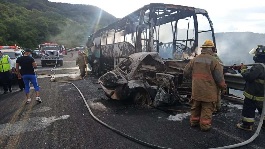 Tras el fuerte impacto, los dos tripulantes del “vocho” perecieron al quedar prensados. En cuestión de segundos la unidad motriz comenzó a incendiarse, por lo que los cadáveres quedaron calcinados al igual que el autobús.
