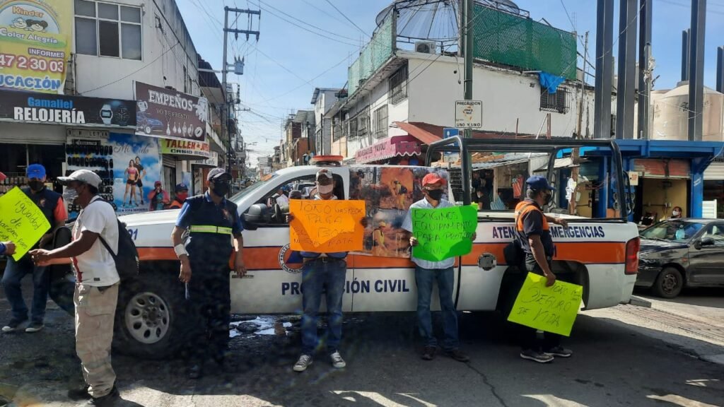 Los quejosos piden el pago del bono por el Día Nacional de Protección Civil y por el Día del Padre, cuyos montos son de 750 y dos mil 500 pesos. También necesitan equipo y su primera quincena de septiembre.