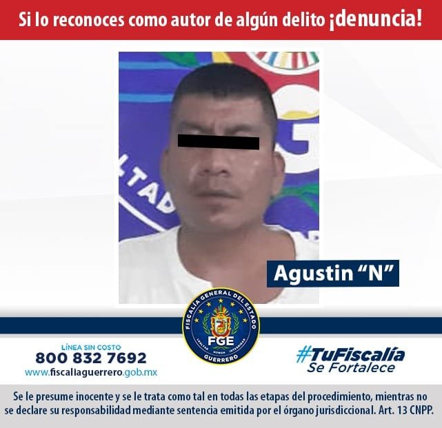 La Policía Investigadora Ministerial de Teloloapan cumplimentó el mandato judicial en contra de Agustín “N”, acusado como probable responsable del delito de violación en agravio de menor.