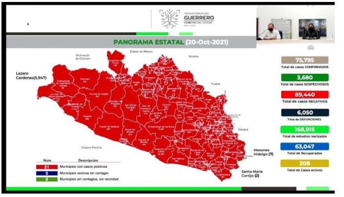 Durante la conferencia diaria para dar seguimiento al tema del Covid-19, el funcionario estatal señaló que la mayor actividad del virus prevalece en los municipios de Acapulco, Iguala, Taxco, Chilpancingo y Zihuatanejo.