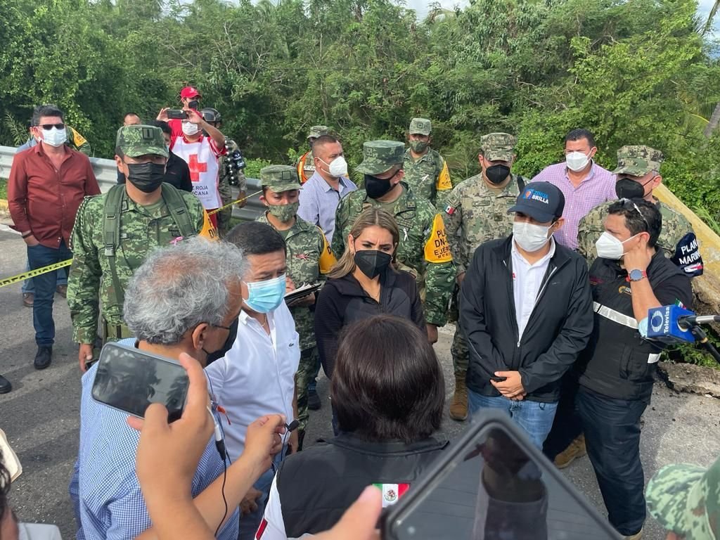 Acompañada por la titular de la Coordinación Nacional de Protección Civil, Laura Velázquez Alzúa, la gobernadora visitó la comunidad de Juluchuca, municipio de Petatlán, en donde resultó afectado un puente ubicado sobre la carretera federal Acapulco-Zihuatanejo.