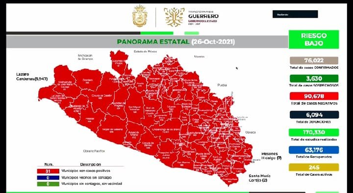 Este martes se confirmaron 245 casos activos, que se ubican básicamente en los municipios de Acapulco, Chilpancingo, Iguala, Zihuatanejo y Tlapehuala.