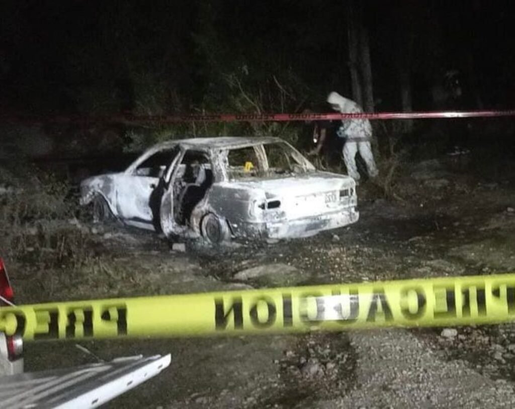 Al observar al interior del auto encontraron el cuerpo del taxista calcinado y con impactos de arma de fuego, en el lugar localizaron varios casquillos calibre 38 súper.