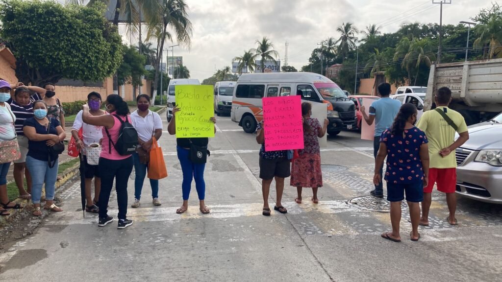 ACAPULCO. —Padres de familia de la escuela primaria “Ignacio Zaragoza” del poblado La Poza bloquearon este miércoles el bulevar de Las Naciones de la zona Diamante, para exigir la reposición de dos plazas, una de maestra de inglés y otra de intendencia.