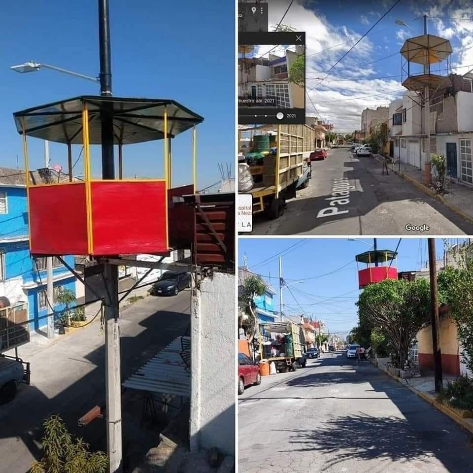 En la calle Pataguas 77, La Perla, Nezahualcóyotl, en el estado de México, a una persona, trabajador de CFE, se le ocurrió la excelente idea de construir sobre un poste de luz un mini salón de fiestas.