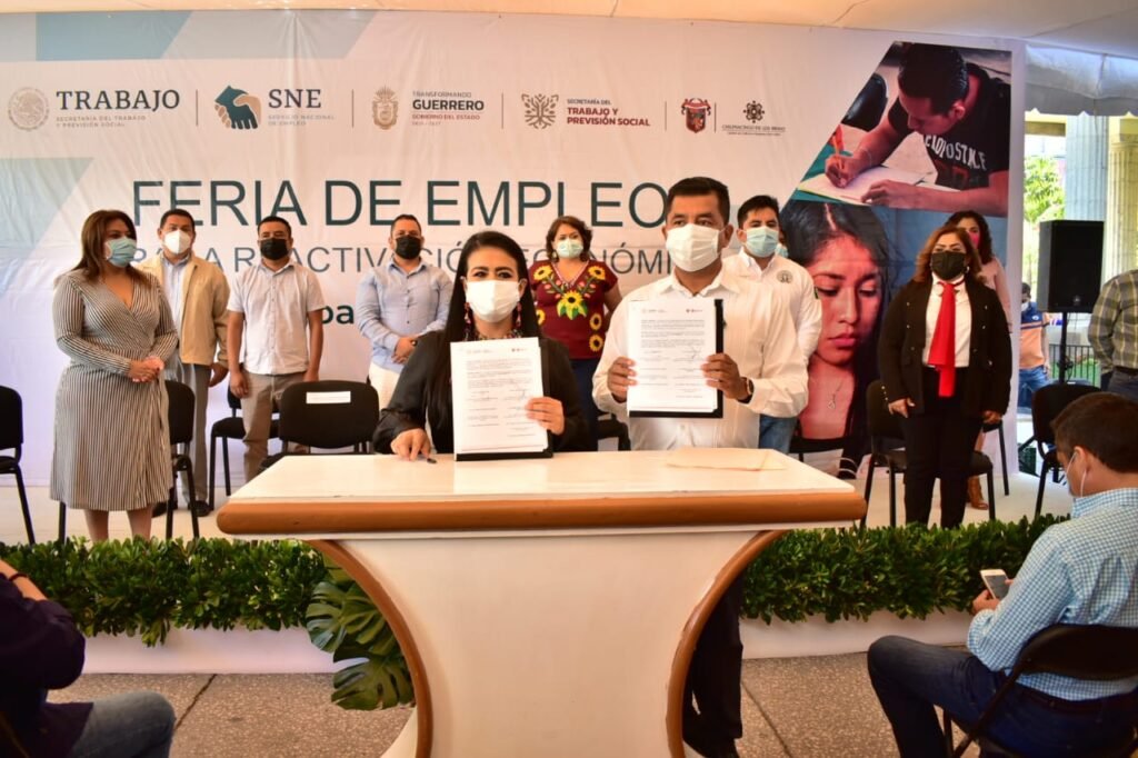 En el marco de la Feria del Empleo para la reactivación económica 2021, se firmó este convenio que permitirá la instalación de una ventanilla única de información del programa de apoyo al empleo al interior del Ayuntamiento, misma que opera la Secretaría de Trabajo y Previsión Social, a través del Servicio Nacional de Empleo Guerrero.