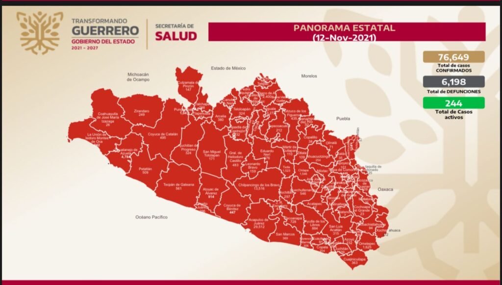 De acuerdo con los datos difundidos por la dependencia estatal, de este día permanecen 244 casos activos en Guerrero.