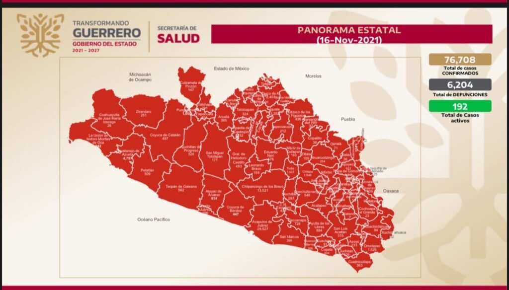 De los casos activos Acapulco presenta 50, Iguala 29, Taxco 27 y Chilpancingo 19.