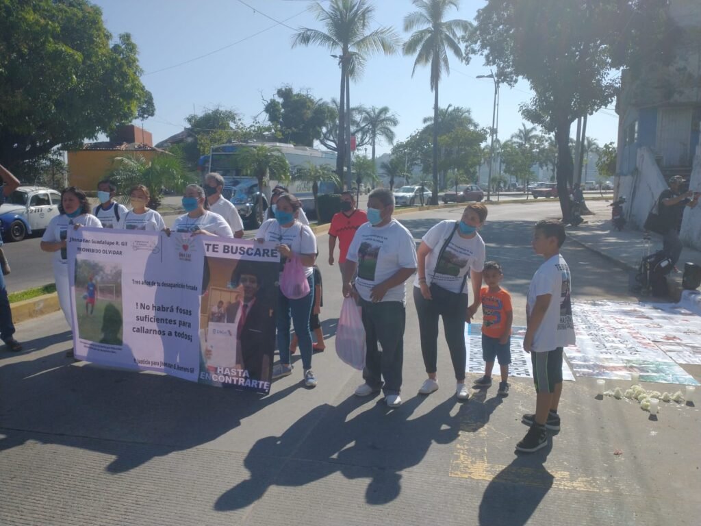 ACAPULCO. —Familiares del joven Jonathan Guadalupe Romero Gil bloquearon de forma intermitente la Costera Miguel Alemán de Acapulco, frente a playa Tlacopanocha, para exigir a la Fiscalía General del Estado (FGE) que reabra el caso, al cumplirse tres años de su desaparición.