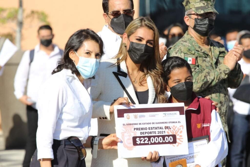 Durante este acto, la gobernadora entregó reconocimientos a los deportistas ganadores del Premio Estatal del Deporte, Jafet Jared Molina Rueda, de la disciplina de vela, originario del municipio de Acapulco; Eder Nicolás Álvarez Hernández, del municipio de Chilpancingo de la especialidad de tenis de mesa, y Jacqueline Avilés de la O, originaria de Iguala y medalla de Oro en los Juegos Nacionales CONADE 2021, en la prueba de 400 metros.