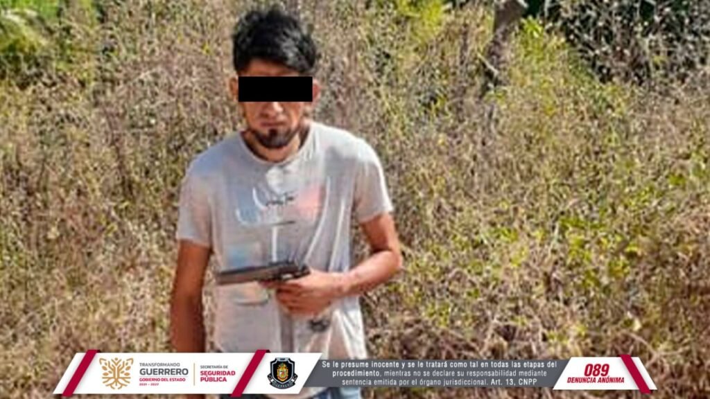 Elementos de la Policía Estatal detuvieron a una persona en posesión de un arma de fuego, cartuchos y un radio de comunicación en el municipio de Zihuatanejo.