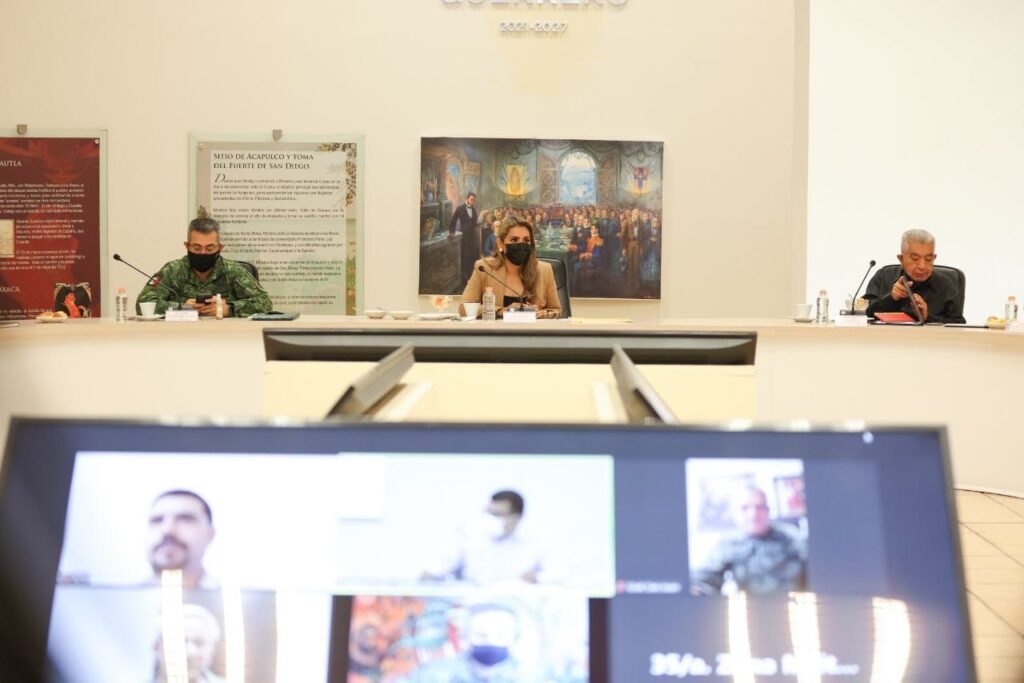 La gobernadora Evelyn Salgado y los integrantes de la Mesa Estatal de Coordinación para la Construcción de la Paz, revisaron los resultados de los operativos, acciones y estrategias de seguridad implementadas en las siete regiones de la entidad.