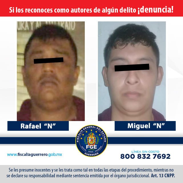 El Ministerio Público en Acapulco obtuvo vinculación a proceso en contra de Miguel “N” y Rafael “N”, alias “El Macaco”, como probables responsables del delito de feminicidio en agravio de Gabriela “N”, hechos el pasado 5 de noviembre del presente año.