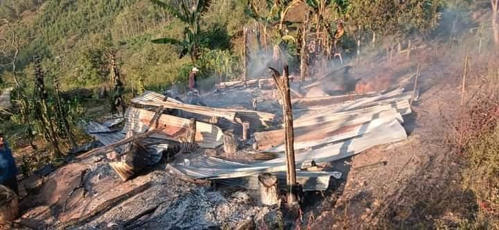 Informó que sus padres estaban en la comunidad de Las Juntas, y al regresar encontraron que su vivienda estaba totalmente consumida por el fuego.