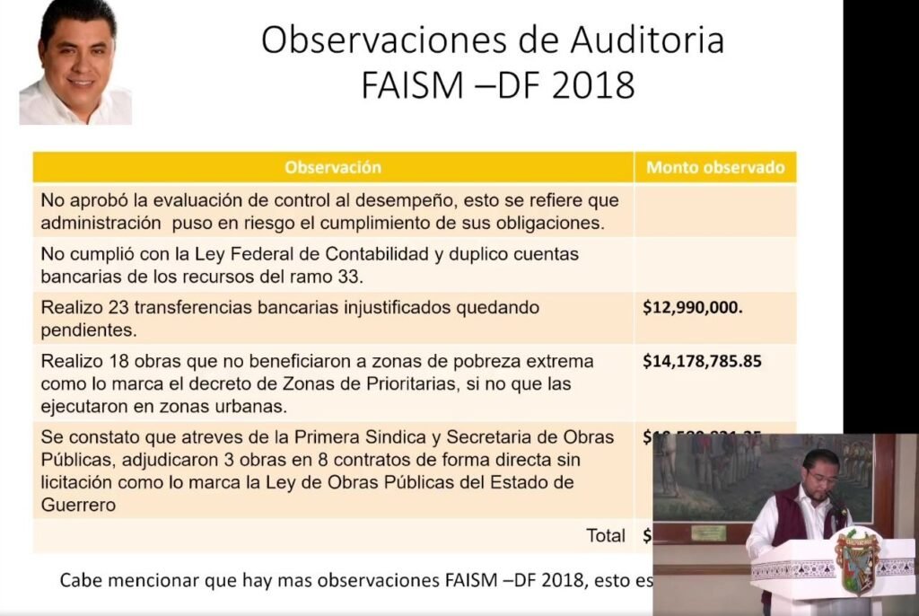 También reveló que Gaspar Beltrán realizó 23 transferencias bancarias injustificadas, no cumplió con la Ley Federal de Contabilidad y duplicó cuentas bancarias de los recursos del Ramo 33.