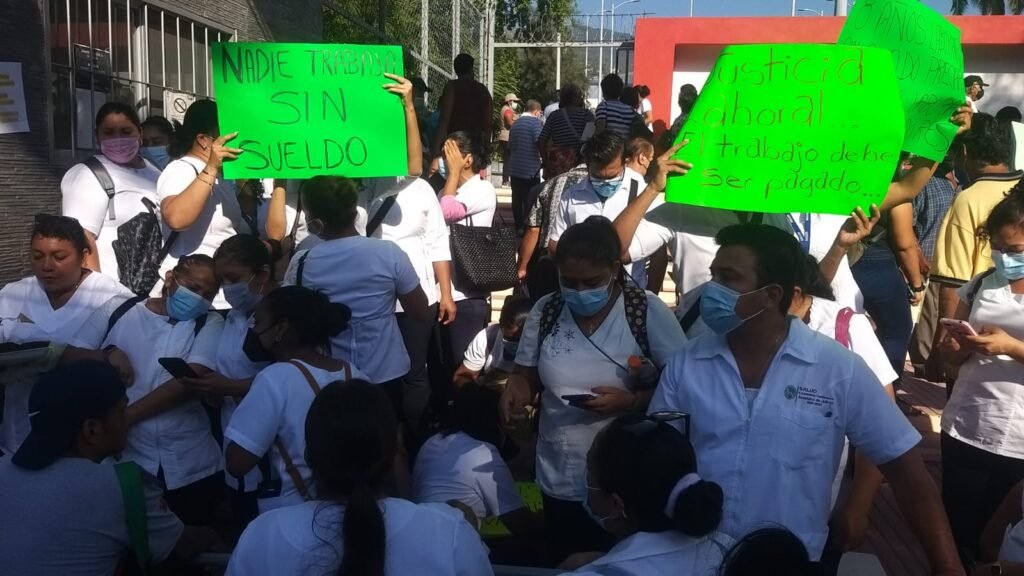Reclamaron que sin tener de momento un contrato, los están llamando a laborar por una semana para la vacunación del refuerzo contra el Covid-19 en Acapulco, pero desde hace dos meses no reciben el pago de sus salarios y están pasando por una difícil situación económica.